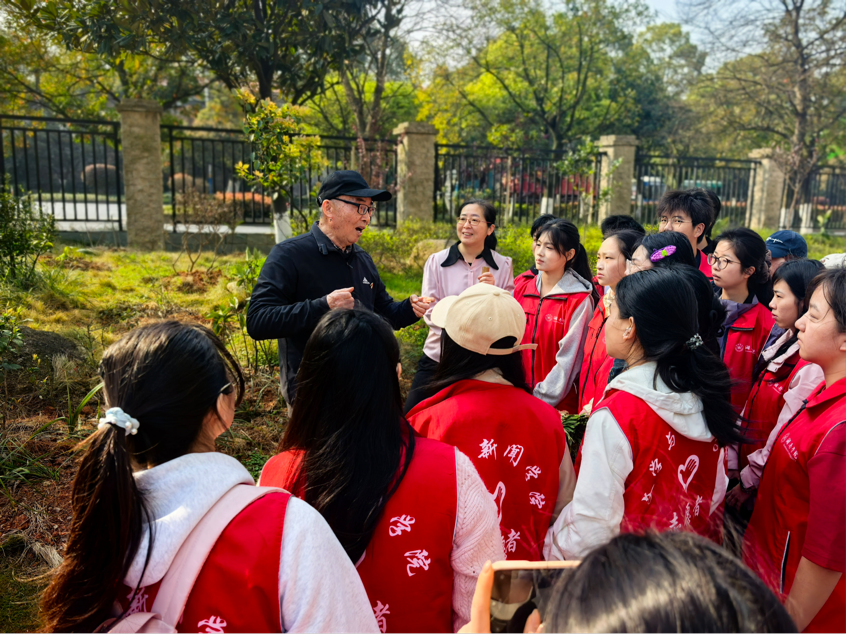 活动现场,耄耋之年的段孟武精神矍铄,化身“生态导师”,带领同学们边走边识、边讲边问,结合植物形态与生长特性耐心答疑,引导大家近距离感知自然、认识草木。