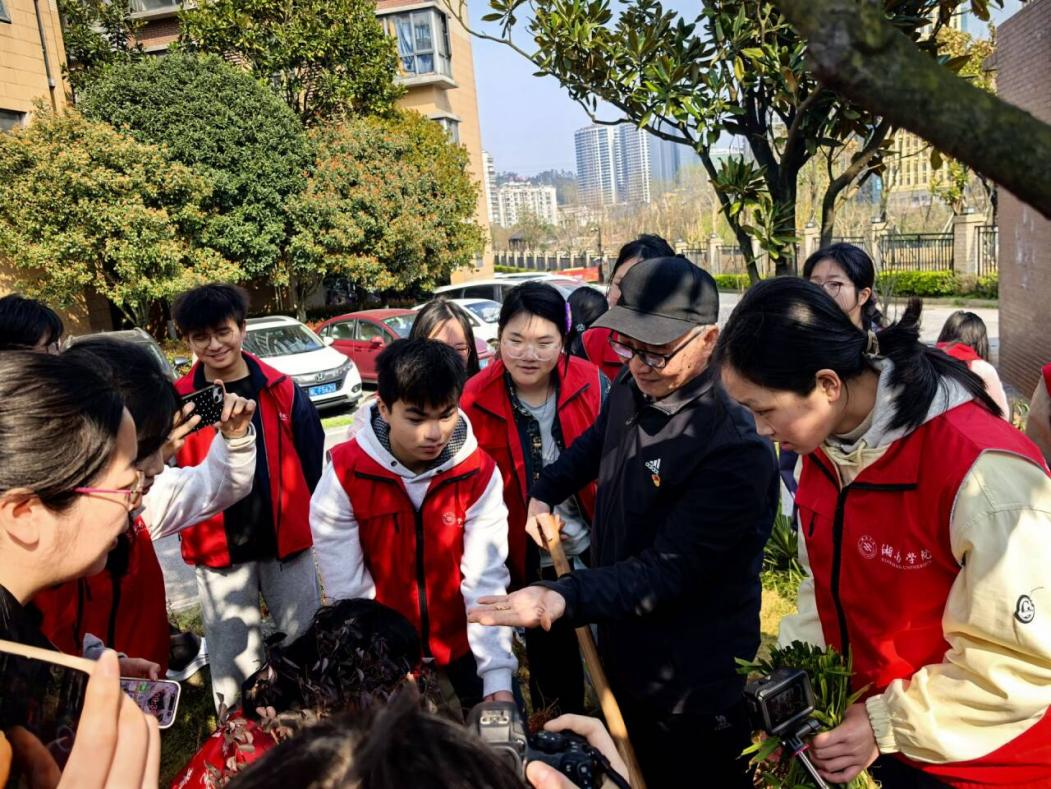 春风催新绿,植绿正当时。近日,湘南学院文学与新闻学院开展沉浸式“树木树人”实践育人活动,活动特邀义务植绿二十余载的退休教师党员、“活雷锋”段孟武担任生态导师。