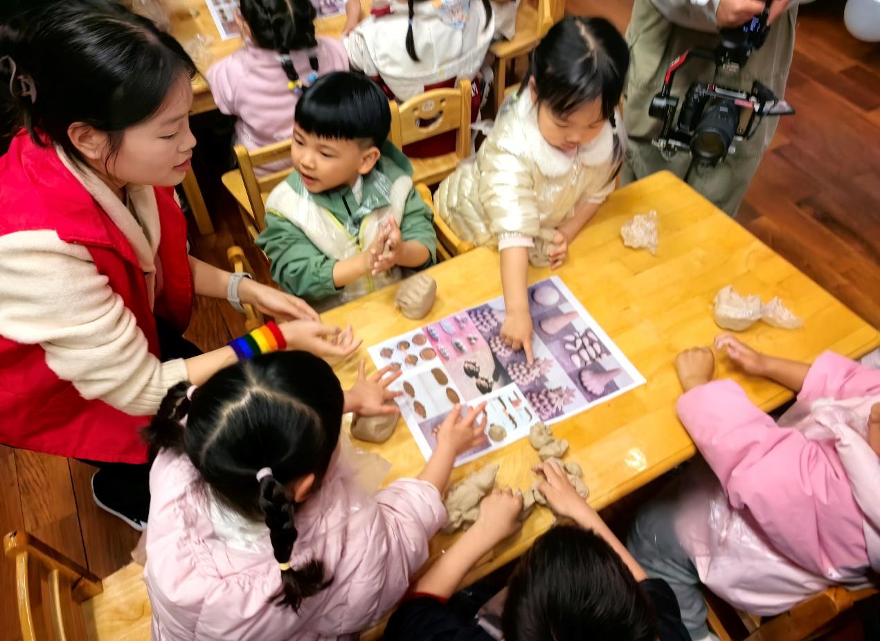 活动现场在师生精心布置下变身“海底考古站”,通过情景化教学与互动式体验相结合的方式,引导孩子们走进历史。志愿者们化身“考古队员”,以儿童剧形式生动讲述唐代“黑石号”沉船的历史故事,带领孩子们了解长沙铜官窑陶瓷远销海外的辉煌历程。在寓教于乐的氛围中,孩子们直观感知陶瓷从泥土到器物的转变过程,激发了对传统工艺的浓厚兴趣。