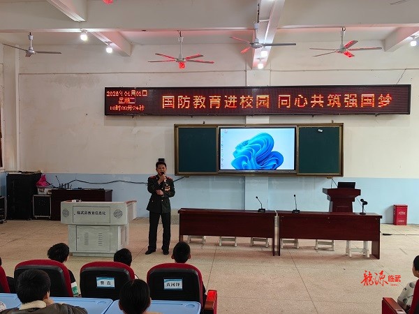 龙源临武客户端4月2日讯(通讯员 郑飞鹰 邓林波)为厚植青少年爱国情怀增强国防观念,4月1日,临武县人武部组织退役军人代表、国防教育教师到麦市镇中心小学开展国防教育主题宣讲活动,为师生们送上一堂生动的国防教育课。