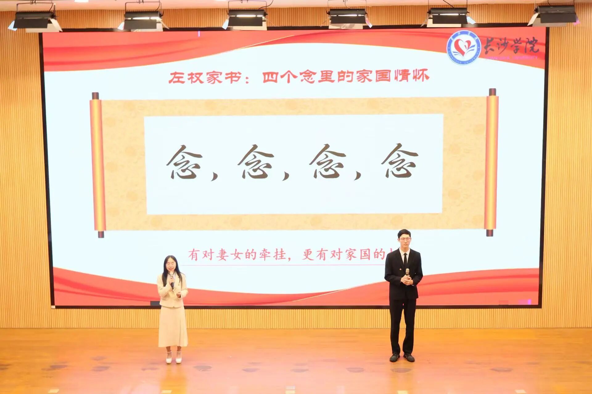 宣讲台上,青春之声铿锵有力。来自马克思主义学院的蔡慈晔小组以一支见证千年文脉的岳麓书院毛笔为独特叙事视角,描绘了新时代青年扎根基层、投身志愿服务,在文脉传承中践行爱国初心的青春答卷;马栏山新媒体学院陈柄宇小组采用跨时空对话形式,情景演绎第28届中国青年五四奖章获得者朱霞与李贞将军跨越时空的相遇,深情诠释长征精神的当代传承,展现湘女扎根基层、实干为民的红色接力与青春责任;学生组织推荐的陈映妤小组从湘西 “背篓专线” 慢火车与乡土民俗切入,在高铁 “中国速度” 与慢车 “民生温度” 的鲜明对比中,深刻彰显国家发展快慢同行、枝叶关情的民生初心与大国担当。