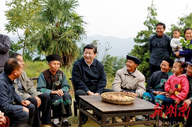 △习近平总书记在湘西土家族苗族自治州花垣县双龙镇十八洞村同村民座谈。 张目 摄