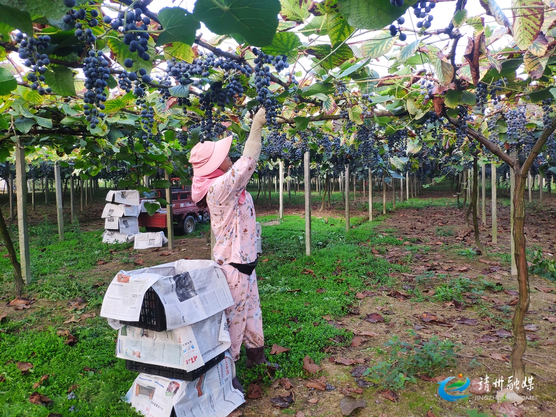 种植户正在采摘高山葡萄