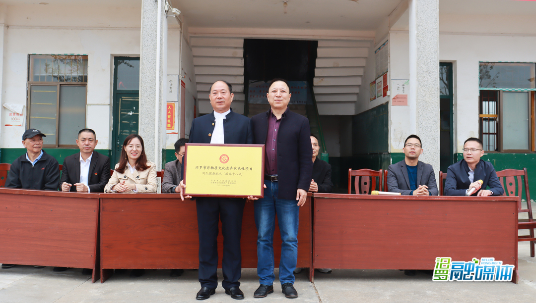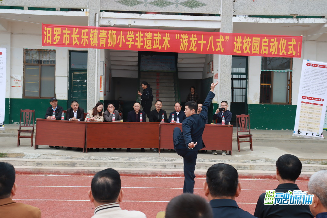 汨罗融媒体讯(记者 夏凡)10月13日下午,汨罗市非物质文化遗产刘氏健身武术“游龙十八式”进校园活动在长乐镇青狮小学启动。现场,市文旅广电局向“游龙十八式”第十一代主要传承人刘东辉颁发“汨罗市非物质文化遗产代表性项目”牌匾。青狮小学聘请刘东辉为校外辅导员,进行非遗武术进校园授课。