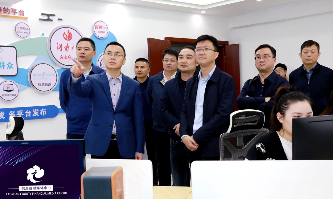 在桃源县融媒体中心,彭晛丹一行先后参观了指挥中心、演播大厅、播出机房、村村响指挥部,并详细了解了中心的采编播制度、人员配备、队伍建设以及运营模式等情况。他指出,融媒体中心作为引导群众、带动群众、服务群众的主要平台,要推陈出新,积极构建融媒生态矩阵,强化优质内容和新媒体产品生产能力,提升新闻宣传的精准性和舆论引导的时度效,用群众喜闻乐见的形式,持续讲述桃源好故事、传播桃源好声音,不断提升县级融媒体的传播力、引导力、影响力和公信力。