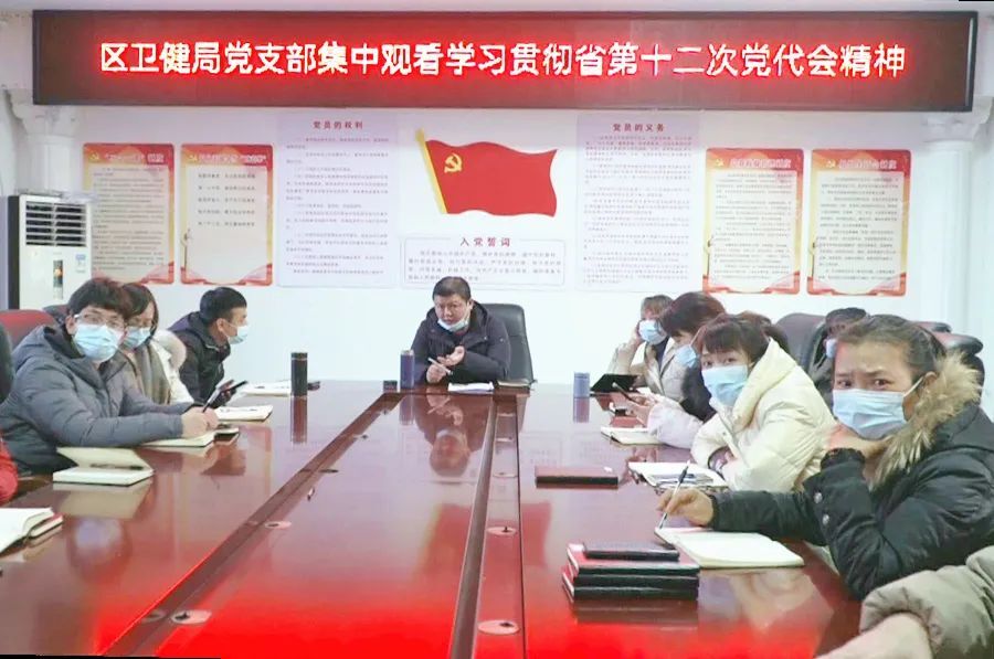 为贯彻落实省第十二次党代会精神,区卫健局召开专题会议,学习贯彻省第十二次党代会精神,把省第十二次党代会精神和各项实际工作有机结合起来,紧盯常态化疫情防控、基本公共卫生服务等中心工作,确保我区居民健康幸福指数不断提升。
