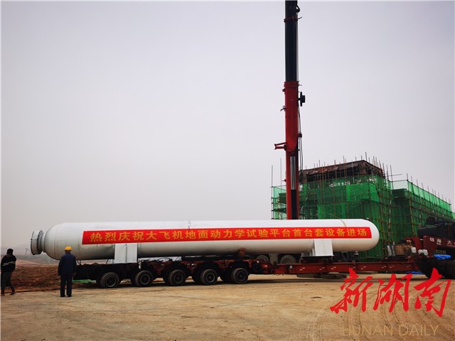 湖南日报·新湖南客户端1月4日讯(记者 张颐佳 通讯员 胡诚)新年伊始,长沙金霞经开区各大项目快马加鞭,加紧建设,持续推进项目建设“加速度”。今天,在中国商飞长沙航空产业及研发基地项目一期工程大飞机地面动力学试验平台施工现场,首台套试验设备储气罐正式进场。标志着湖南省与中国商飞合作共建的大飞机地面动力学试验平台进入设备安装准备阶段,为后续设备批量进场安装打下坚实基础。