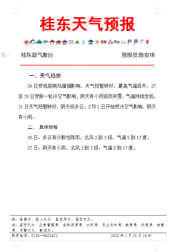 @桂东人 1月25日发布的最新天气预报 请查收