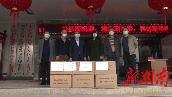 湖南日报·新湖南客户端讯(曹富蓉 李靖宇 刘喜) 2月27日,三家爱心企业向将一批口罩、医用酒精等捐赠物资送到耒阳市经济开发区管委会,支援园区企业复工复产。耒阳市委常委、市经济开发区管委会主任李云出席捐赠仪式。