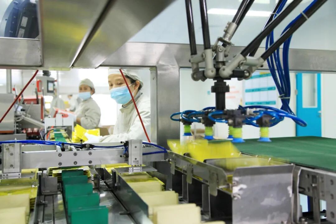 而在另一头,为确保防疫期间的药品政策供应,千金集团旗下的零售企业千金大药房筛选出300余家符合开门条件的门店,在春节期间开门营业,近1000人在岗提供零售服务;旗下千金药材应市场迫切需求,紧急召回员工,加班加点赶制加工艾叶;为保证市场上产品稳定供应,生产班组把双休改为单休,一班改为两班。在益母颗粒包装班,两条全自动包装生产线在飞速运转。截至目前,益母颗粒累计生产了44万盒。