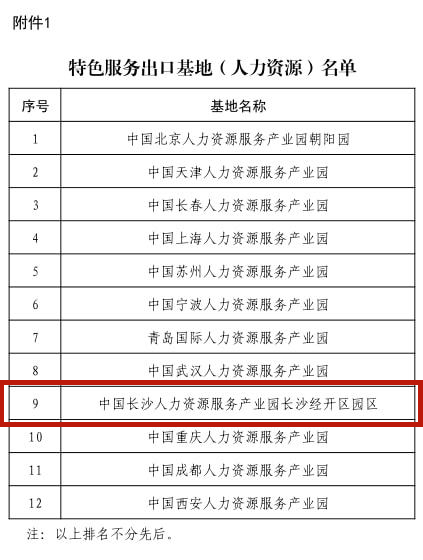 今年3月,人力资源社会保障部、商务部联合认定了首批人力资源服务领域特色服务出口基地,中国长沙人力资源服务产业园长沙经开区园区(以下简称为“长沙经开区人力资源服务产业园”)位列其中。