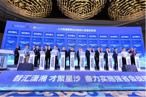 5月10日,中国(湖南)自由贸易试验区国际人才港政策兑现暨县区人才政策发布活动现场,湖南省人社厅党组成员、副厅长阳望平宣读了国家人力资源服务出口基地批复。随后,湖南易立信、长沙启恒劳务、湖南汇洋国际劳务等12家机构与长沙经开区签约,正式入驻长沙经开区人力资源服务产业园。