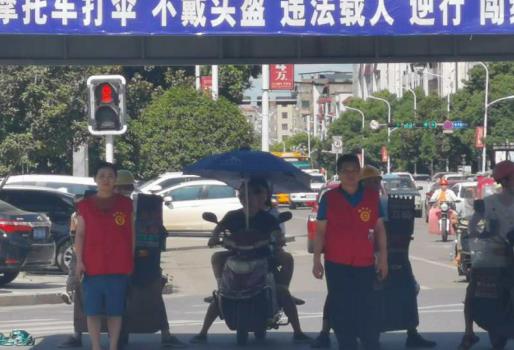 顶着炎炎烈日,志愿者坚守岗位,用实际行动倡导文明交通观念、践行志愿服务精神,为广大市民营造安全、顺畅的道路交通环境。(王颖)