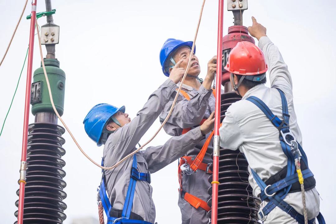 在110千伏板仓变电站内,电力检修人员对电网设备开展消缺工作。整个度夏期间,将设备巡视、测温结合,不间断开展度夏高温特巡工作,优化设施运行环境,及时消除隐患,确保迎峰度夏期间电网和设备安全稳定运行。