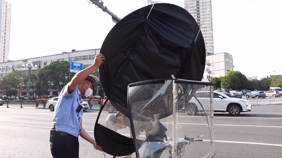 日前,记者在开元路与板仓路的交叉口看到,非法加装遮阳伞、雨篷的电动车被一一拦了下来,交警上前,对车主的违规加装行为展开了批评教育。市民表示自己认识到了错误,愿意积极配合交警,对加装的物具进行拆除。