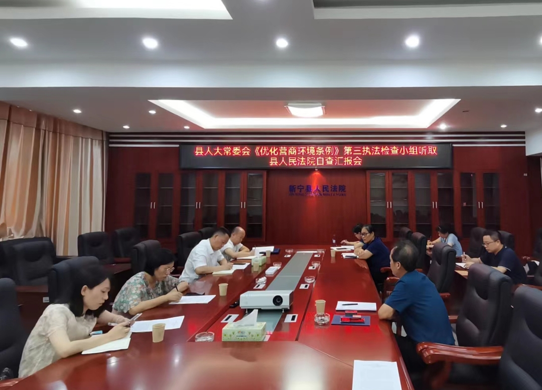 会上,执法检查组听取县人民法院和县公安局贯彻落实《优化营商环境条例》情况汇报,详细了解贯彻实施《优化营商环境条例》的主要做法、亮点工作和下一步工作打算。检查组对县人民法院和县公安局优化营商环境工作取得的成效给予充分肯定,并指出,开展此次执法检查是深入学习贯彻习近平法治思想、贯彻落实国务院《优化营商环境条例》、依法助力全县经济社会高质量发展的重要举措。县人民法院和县公安局要在为企业提供公平正义的法治环境、透明高效的政务环境、竞争有序的市场环境、遵诺守信的社会环境上下功夫,为全县经济社会发展保驾护航。