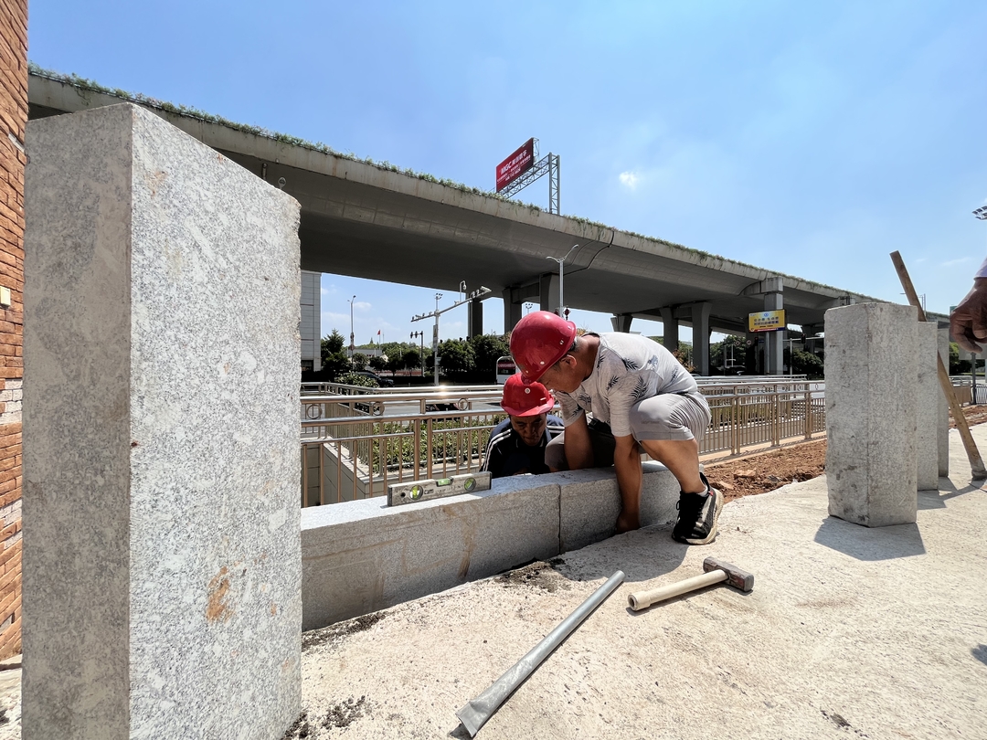 上午10点,记者在黄花镇岐山社区看到,施工人员正顶着烈日更换路边条石,方便下一步铺设沥青。据了解,岐山社区常住人口一万五千人,因为道路建成年代较早,路面不堪重负,原有的沥青路面老化损毁严重,雨天积水严重,且没有规划停车位,严重影响社区居民和周边商户出行。今年8月,黄花镇对社区建筑前区路面启动提质改造工程,对破损路面进行修复,摊铺沥青,并重新规划停车位,极大改善了社区环境,提升了居民的生活品质。