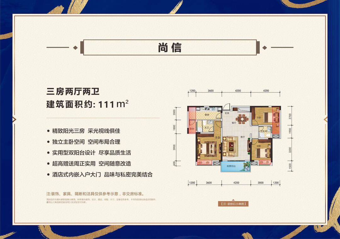 尚书府由13栋高层建筑组成,在现代建筑风格设计主线上,融入新中式元素,彰显简约、大气、典雅的视觉形象。特邀湖南省建筑设计院进行全过程设计和工程管理,精工品质,争创全省示范工程样板。尚书府以提升湘阴人居水准为目标,设计106-145㎡板式户型,满足多元化居住需求。“两轴一中心多组团”景观布局,融合东方意境园林,环境优美,配套齐全,视野开阔,致力于绝佳的人居体验。