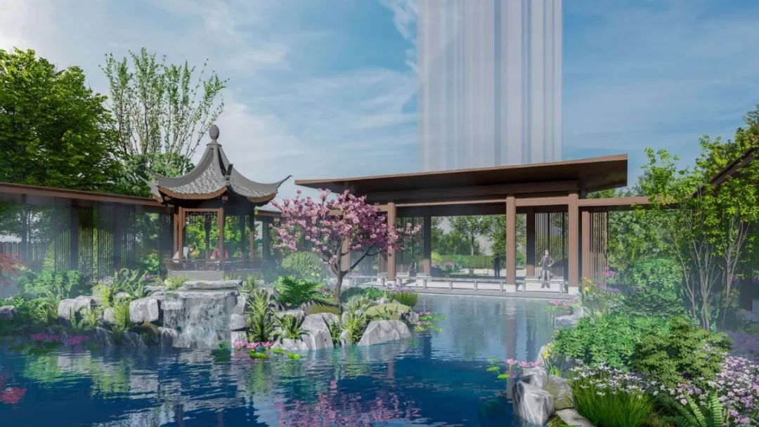 华奕·曙光里于山水中汲取灵感,融合东方建筑美学,回归悠然生活:可春赏花、夏纳凉、秋观叶、冬观枝,赏草木深深,藏四时烂漫,看四季更迭,让居者于低密社区内,俯仰之间满目皆绿…….