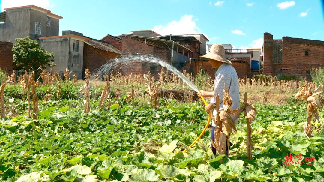 舜峰镇南冲村村民邝献国种植了200余亩香芋南瓜,由于缺乏有效降水,河流接近干涸,香芋南瓜缺水长达20多天,邝献国只能在附近钻了一口深达百米的水井,将地下水抽到地表进行灌溉。