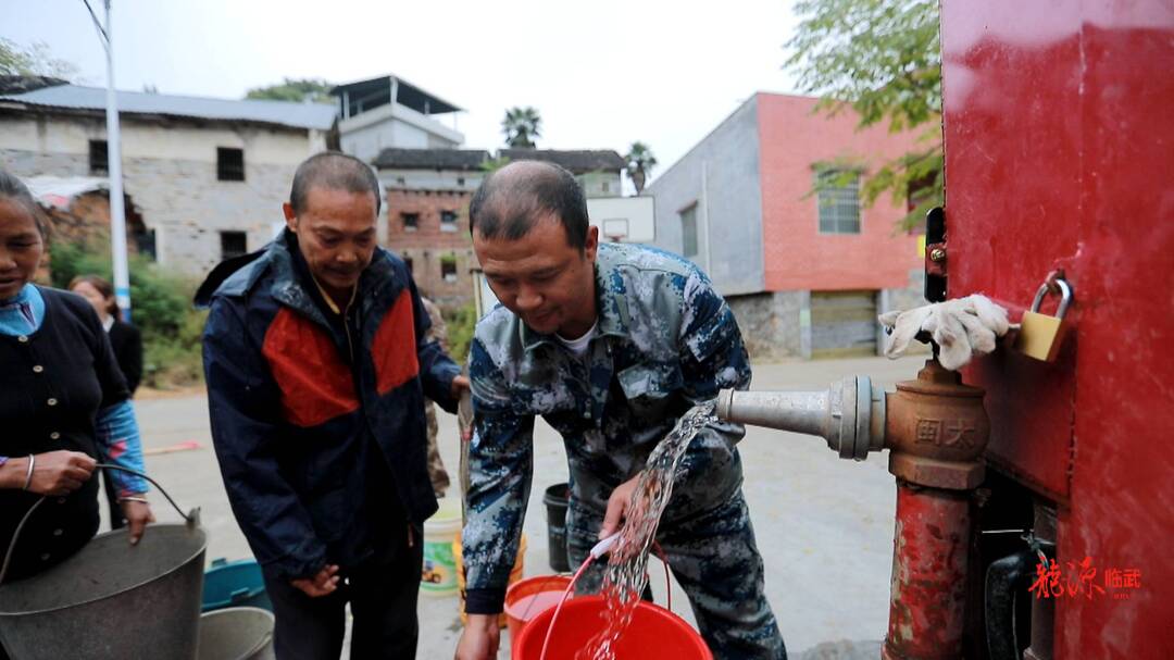 “乡亲们,水来了。不用挤、不用挤,都有、都有,都排好队,有水有水哈,一个个来,不要把水浪费了。”听到熟悉的广播声音,村民们提着桶陆续赶来,看着干净的水,大家激动的心无以言表。