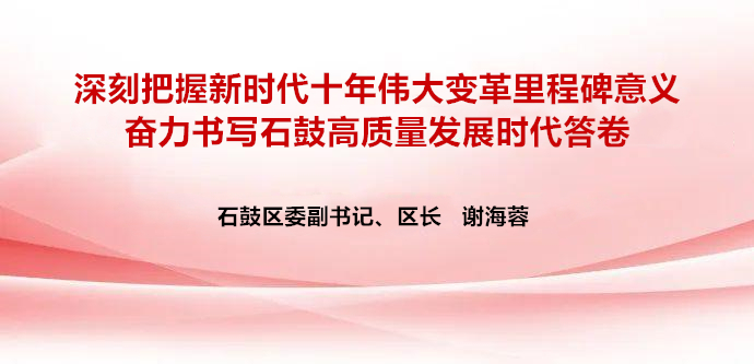 党的二十大报告着重强调,“新时代十年的伟大变革,在党史、新中国史、改革开放史、社会主义发展史、中华民族发展史上具有里程碑意义。”我们要认真学习、全面把握新时代十年伟大变革的深刻内涵和重大意义,坚定历史自信、增强历史主动,踔厉奋发、勇毅前行,在新的赶考之路上奋力书写石鼓高质量发展的时代答卷。