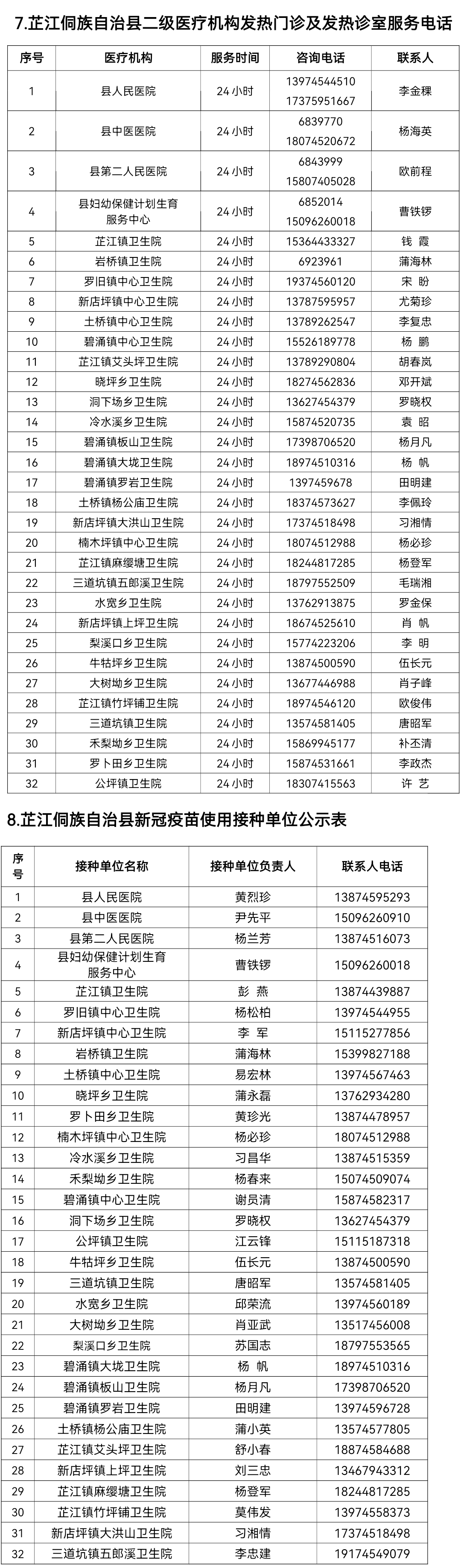 7.芷江侗族自治县二级医疗机构发热门诊及发热诊室服务电话