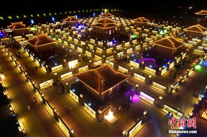 资料图:农历正月十五元宵节,甘肃省张掖市甘州区“九曲黄河灯阵”亮灯,欢庆元宵节。(无人机航拍) 中新社发 成学磊 摄