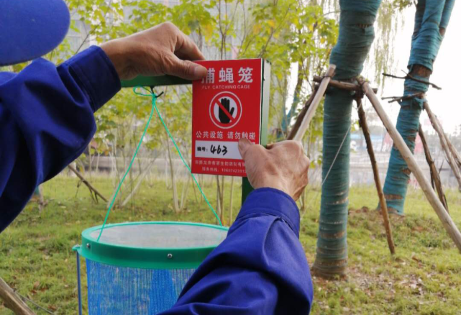 市场内视情况挂置粘蝇纸,有条件的可安装灭蚊蝇灯,专人负责,及时更换饵料清理死蝇。