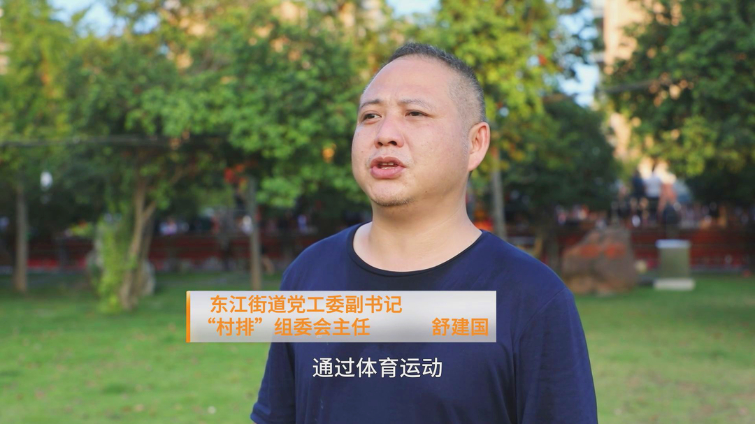 东江街道有热爱运动的传统,以前,当地就在刚收完稻谷的田间地头打起排球,我们要重新擦亮“排球之乡”的名片,我们一直在改善加强辖区内健身场地、设施的建设,让居民“少打牌”“多打排”,提升居民的运动素养,丰富业余生活。