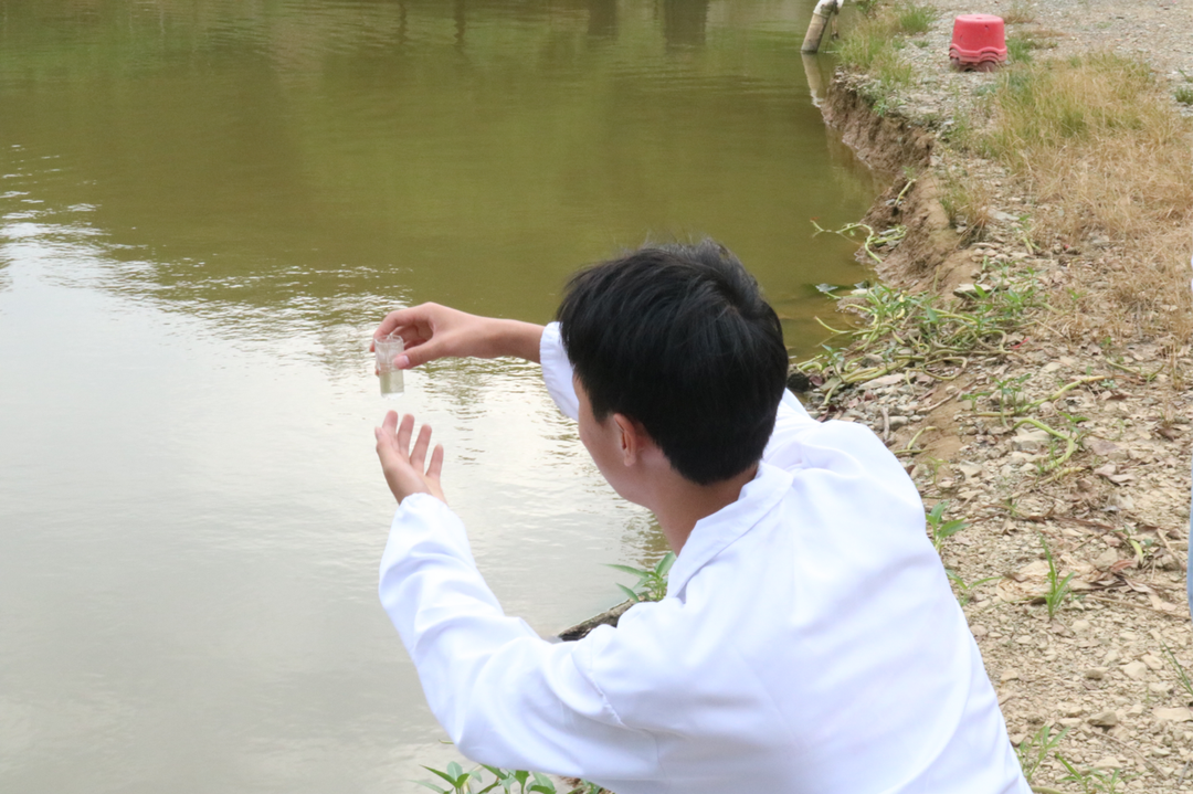 “好的水质环境中养出的鱼品质自然更好,这项光学检测技术能够帮助养殖户们更好地观测养殖环境。”志愿者王辛月手持水质检测仪器,俯身于岸边,专注地进行水样提取,“用我们的专业知识,以科技的力量助推乡村振兴,我认为这是一件很光荣的事。”
