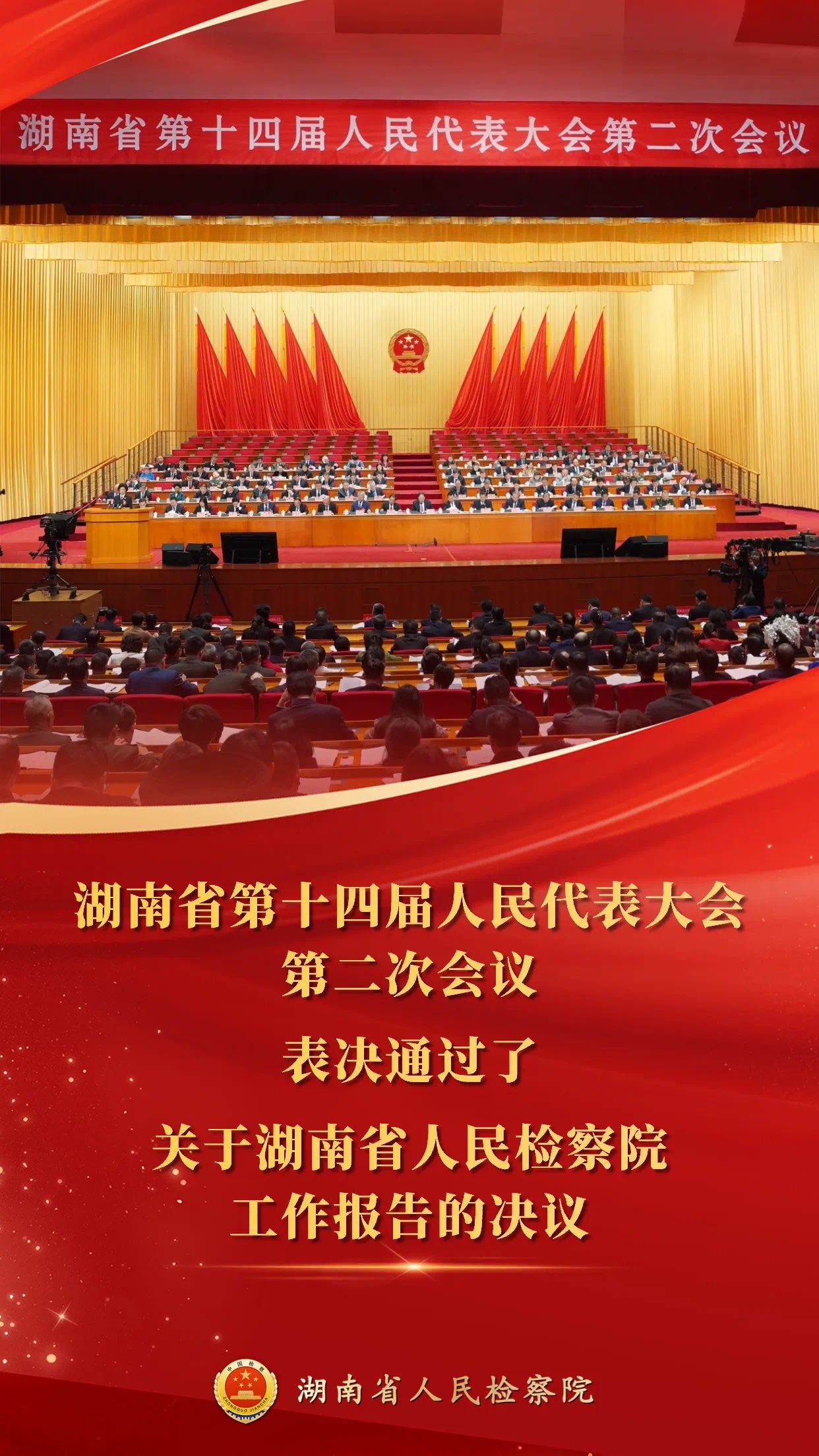 湖南省第十四届人民代表大会第二次会议表决通过了关于湖南省人民检察院工作报告的决议。