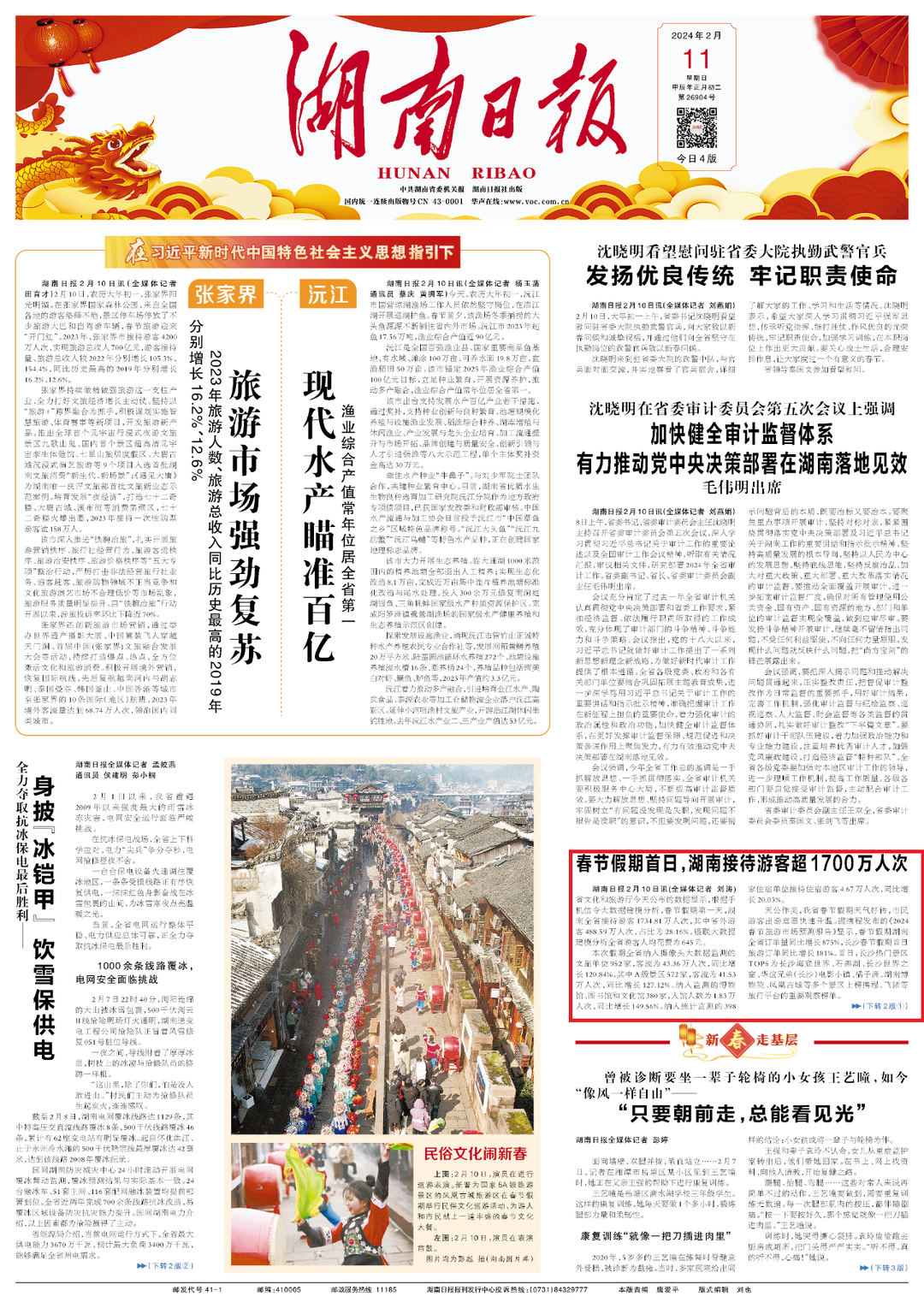 天公作美,我省春节假期天气好转,市民游客出游意愿快速升温。据携程发布的《2024春节旅游市场预测报告》显示,春节假期湖南全省订单量同比增长875%,长沙春节假期首日旅游订单同比增长181%。首日,长沙热门景区TOP5为长沙海底世界、石燕湖、长沙世界之窗、华谊兄弟(长沙)电影小镇、橘子洲。湖南博物院、凤凰古城等多个景区上榜携程、飞猪等旅行平台的重要观察榜单。