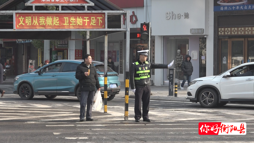 在衡阳县城区新正街、蒸阳大道等人流、车流量大的路段,交警大队实行“定位、定人、定责”措施,安排民辅警全天候执勤值守,对过往车辆和行人进行分流和疏导,并对不按规定佩戴安全头盔、违规加装遮阳伞等行为及时纠正,确保市民春节期间出行的生命财产安全。