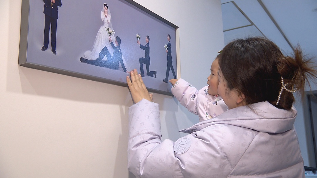 刘甜甜的丈夫黄丽辉是一名现役军人。他们有一个刚满十个月的女儿,平日里是由她和婆婆一起照看。丈夫所在连队常年在外执行任务,原本过年期间有二十多天探亲假,临时接到任务,黄丽辉在家只待了十天就匆匆赶回单位。虽然平时生活中他们聚少离多,但说起他们的相识相恋,刘甜甜还是满心甜蜜:"高中的时候,我就觉得他挺阳光的,给人很有安全感。我大二的时候,他那时候已经在部队了,有一天突然找我,然后我们聊天,然后聊着聊着,他就说在一起吧!然后我们就在一起了。"