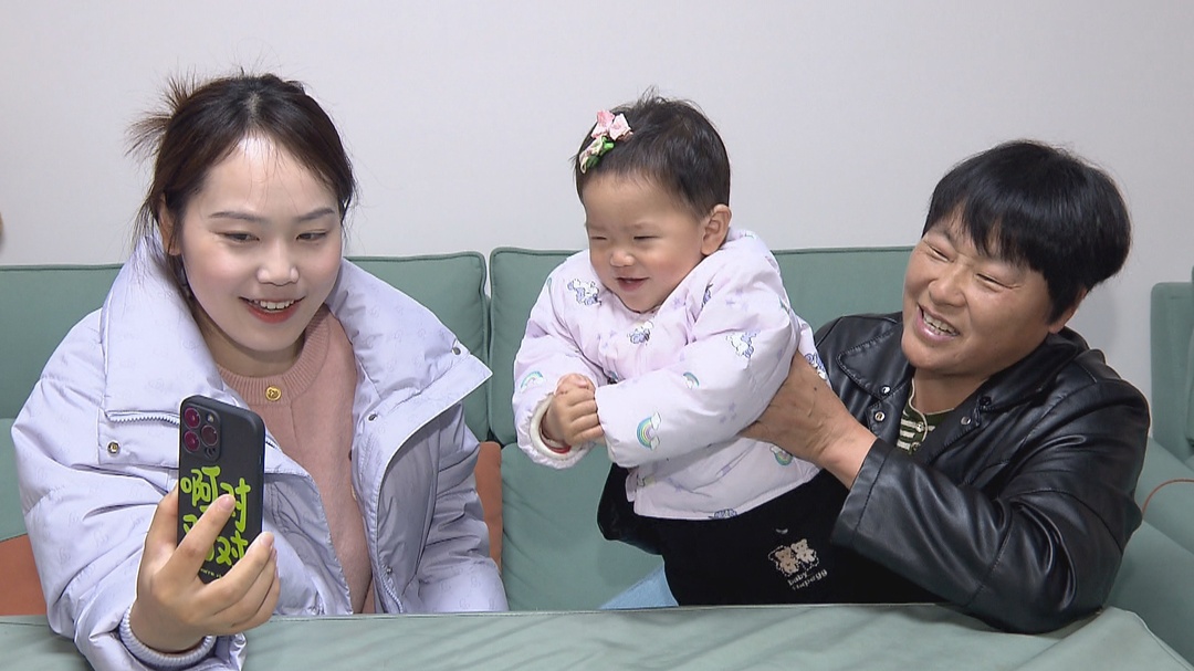 刘甜甜和婆婆以及女儿与丈夫黄丽辉通视频电话