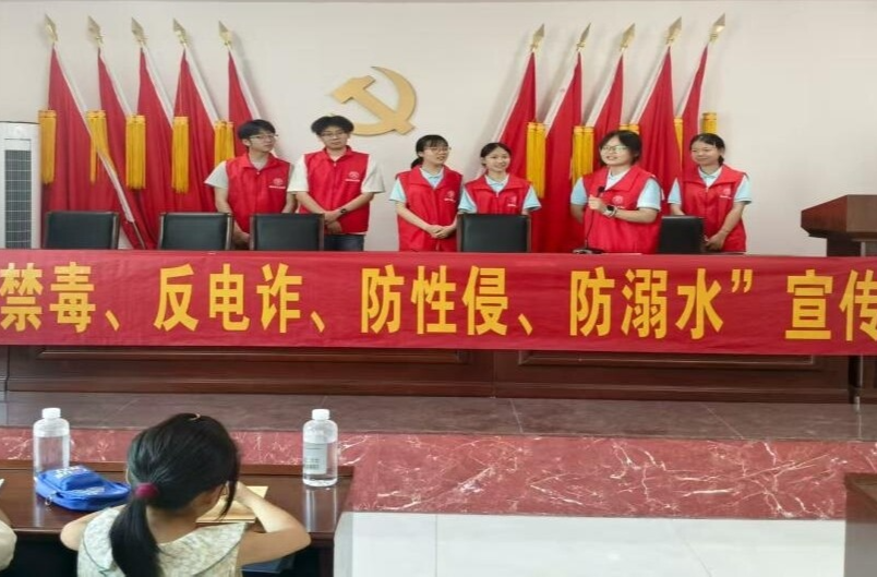 洪市镇联合大学生志愿者开展”禁毒、反电诈、防性侵、防溺水”宣传活动