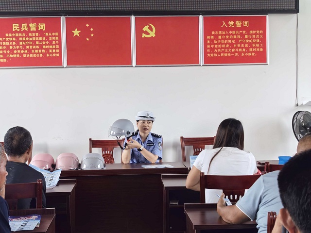 蓝山县公安局交管大队开展“头盔大事,幸‘盔’有你”交通安全主题宣传活动