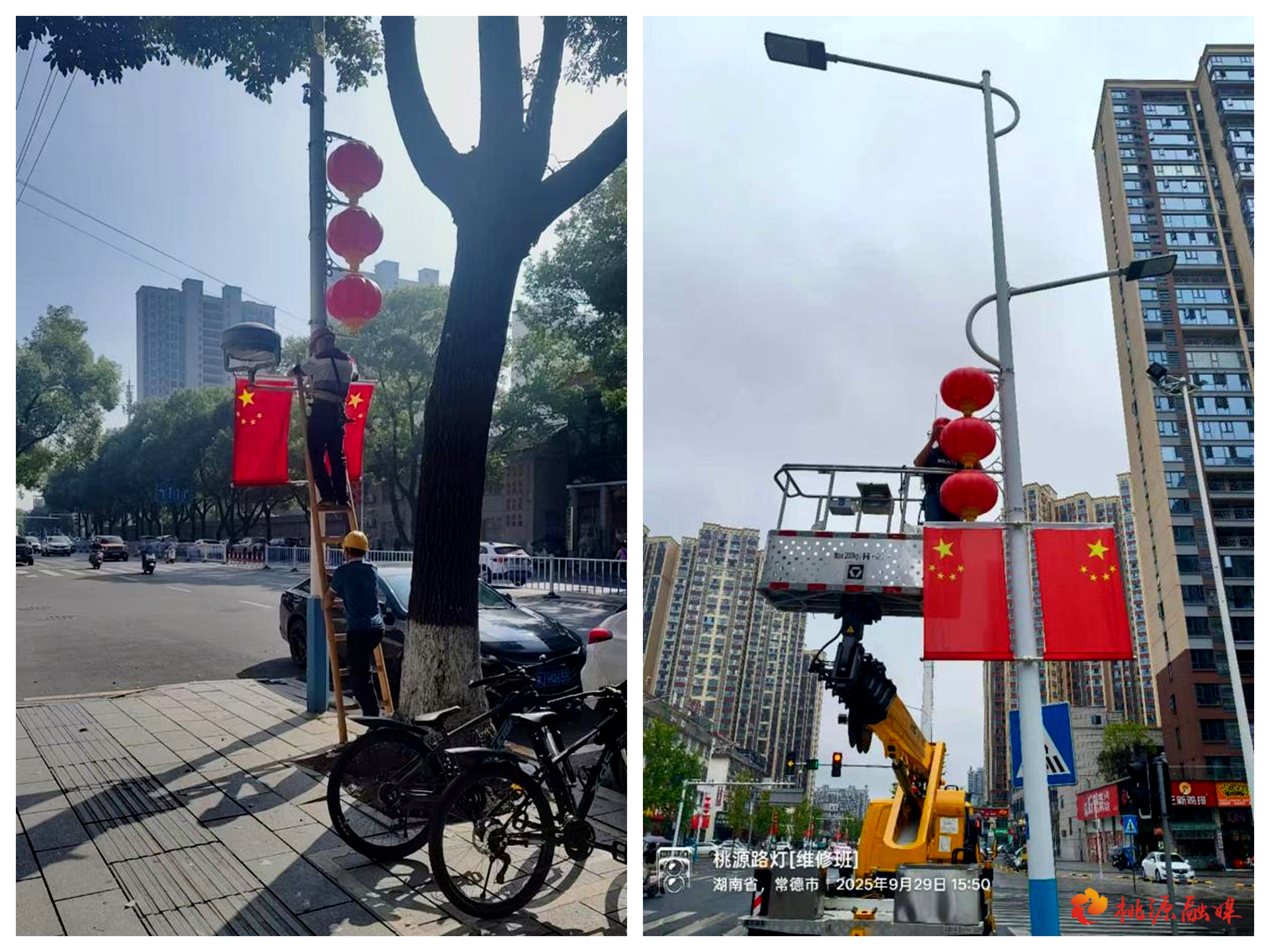 【品质桃源】县路灯管理站:国旗高悬映初心,灯笼焕新庆华诞