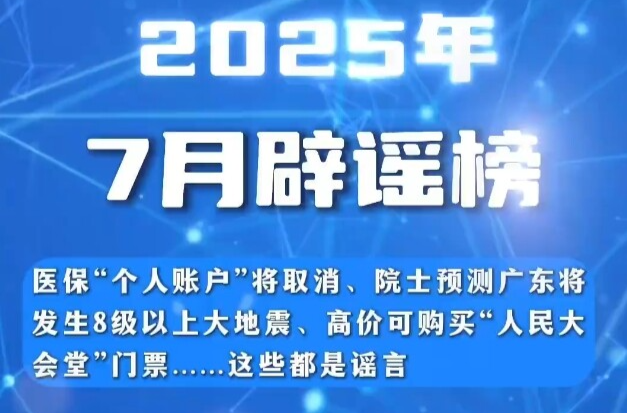 医保“个人账户”将取消、院士预测广东将发生8级以上大地震、高价可购买“人民大会堂”门票 中国互联网联合辟谣平台2025年7月辟谣榜