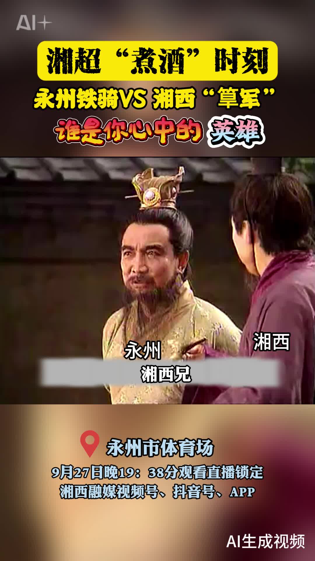 湘超“煮酒”时刻永州铁骑VS 湘西“鬼军” 谁是你心中的英雄 AI生成视频——湘西州广播电视台 易灏 梁玉娇