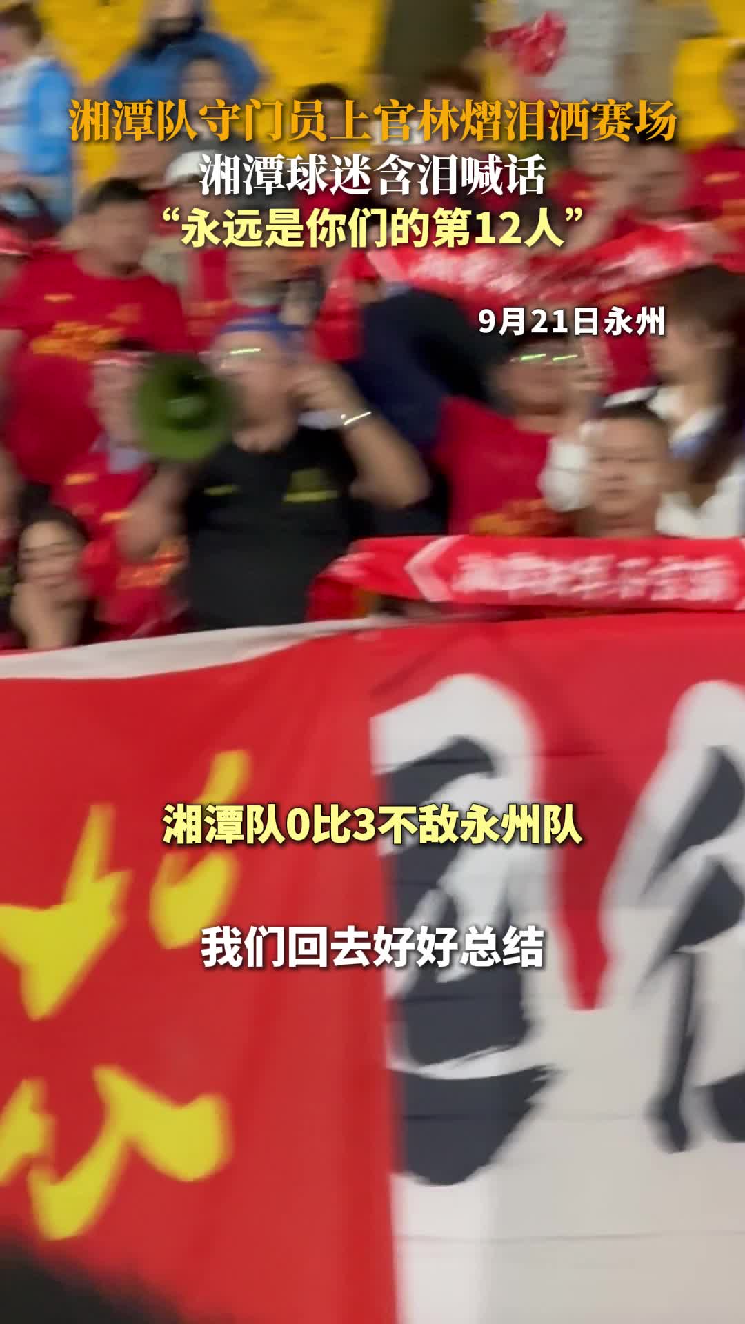 湘潭队守门员上官林熠泪洒赛场,湘潭球迷含泪喊话“永远是你们的第12人”一一湖南广播电视台经视频道